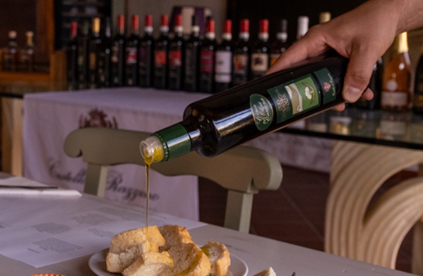 A seguire verrà servito un aperitivo basato sulla degustazione del nostro olio EVO “Conca degli olivi”, in abbinamento a 3 prodotti tipici del territorio accompagnati da un calice di vino.